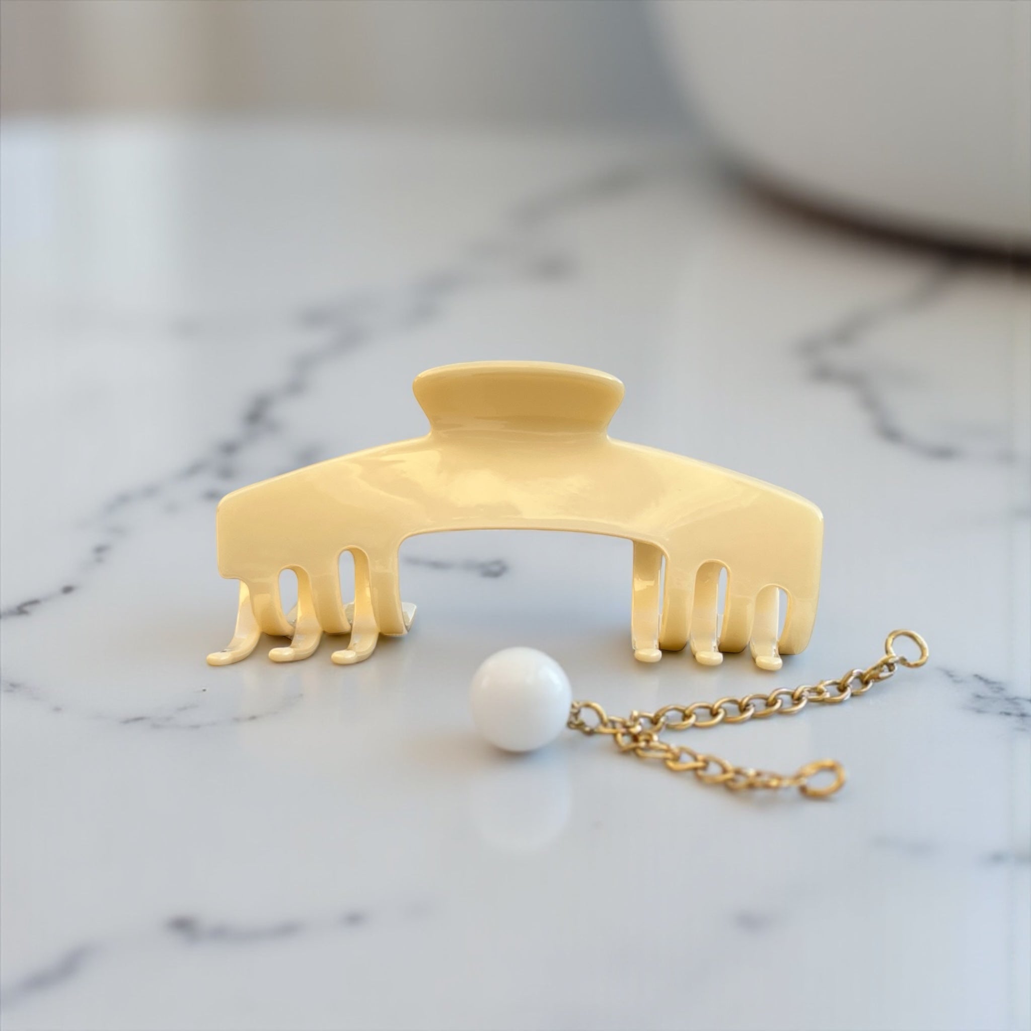 Elegance is the clean-girl, polished claw clip that makes thick hair look intentional in seconds. Its ivory finish instantly elevates a basic clip into a sleek, minimal accessory.