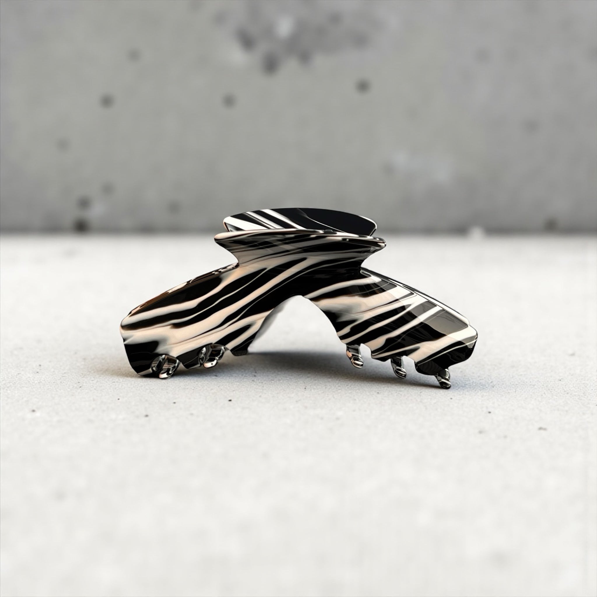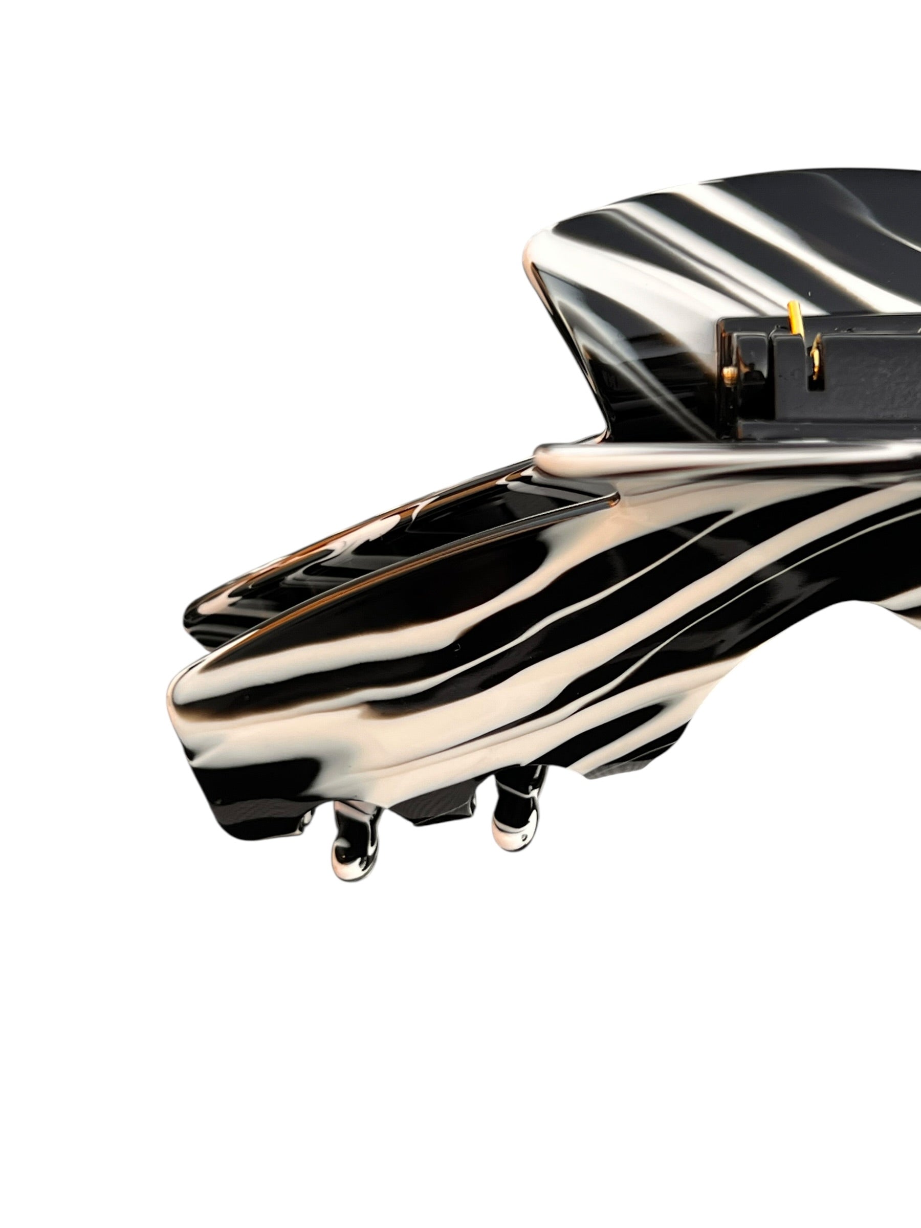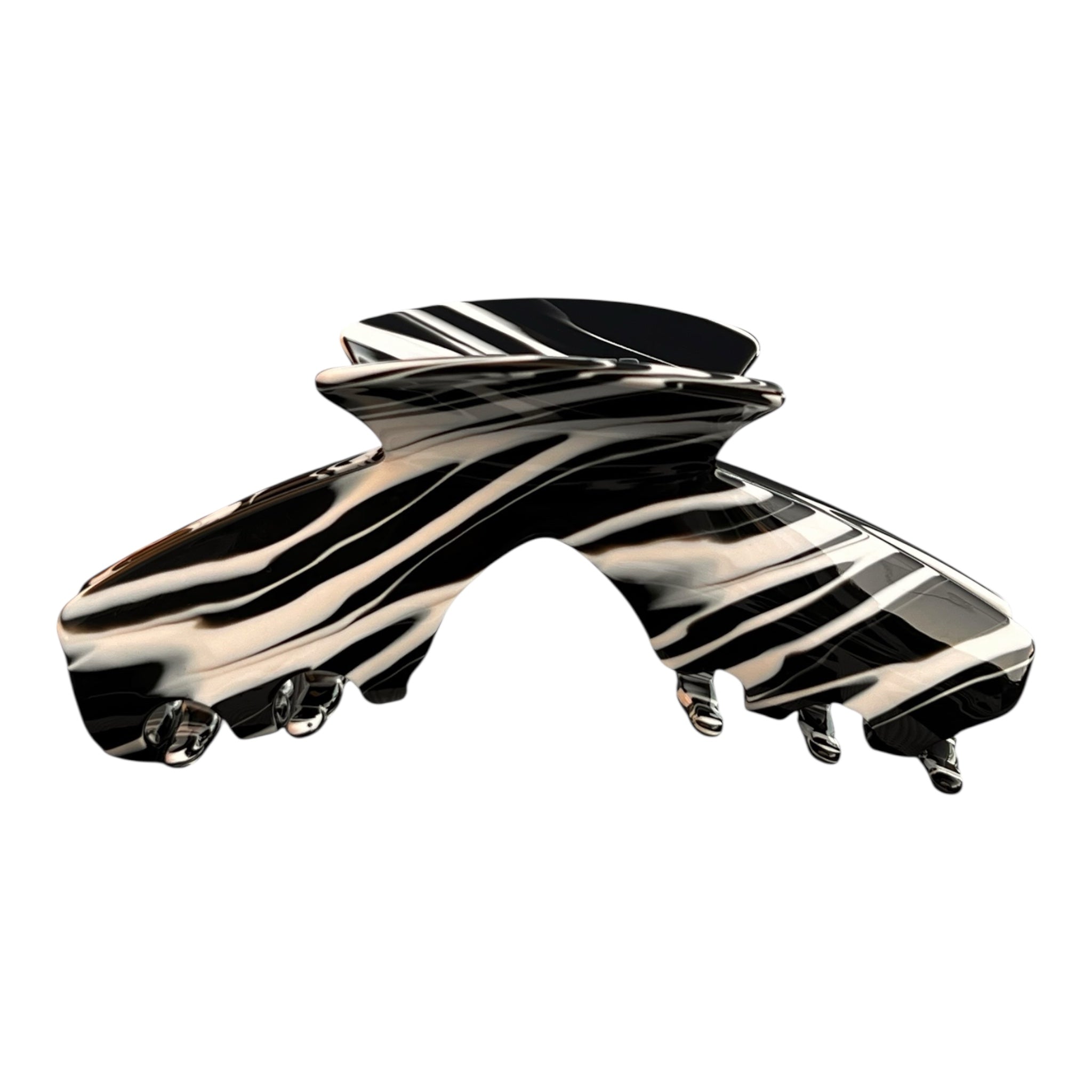 Maverick is the rule-breaking claw clip that refuses to blend in. The black and white swirl finish brings instant standout energy while the secure clamp keeps most hair types in place without tugging or slipping.
