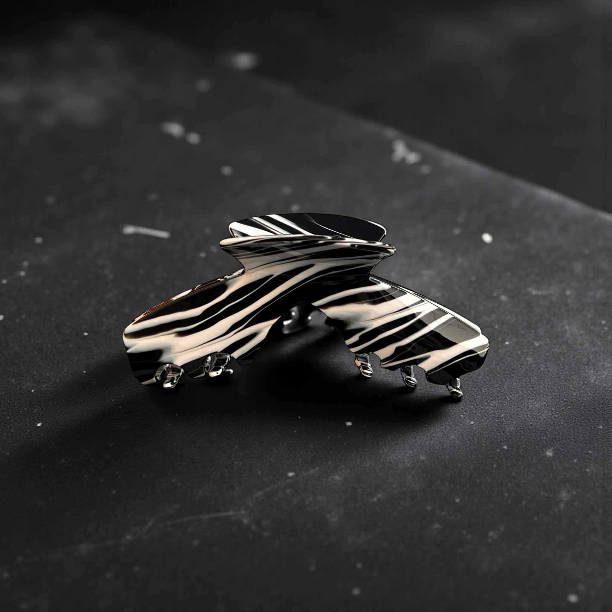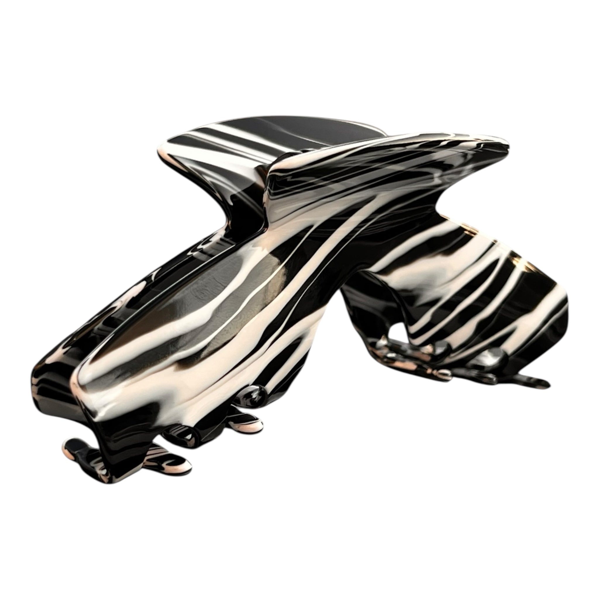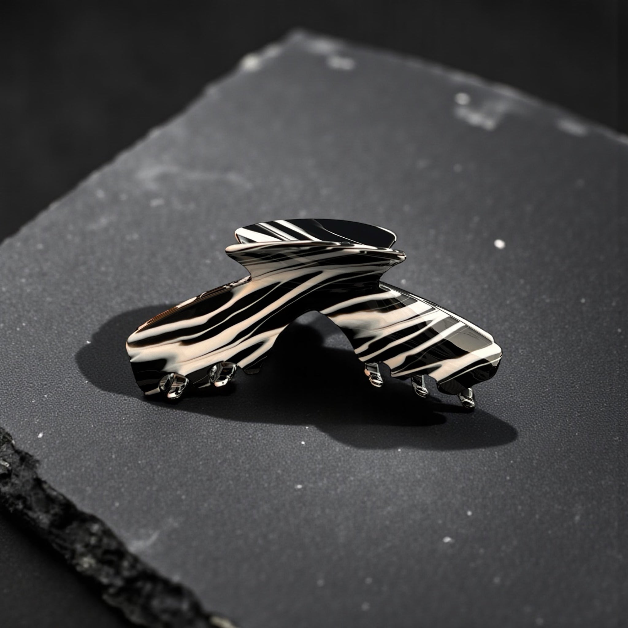 Maverick is the rule-breaking claw clip that refuses to blend in. The black and white swirl finish brings instant standout energy while the secure clamp keeps most hair types in place without tugging or slipping.