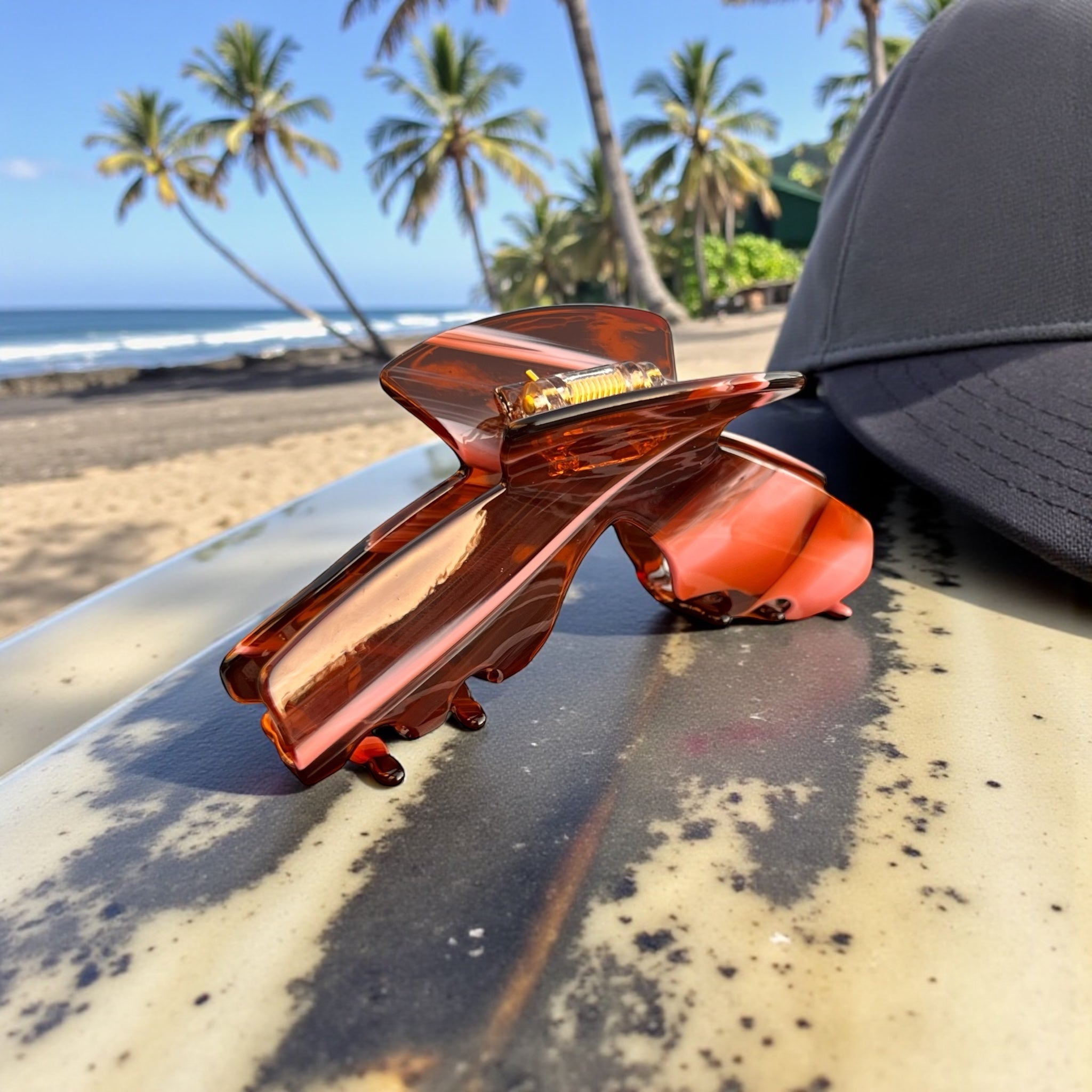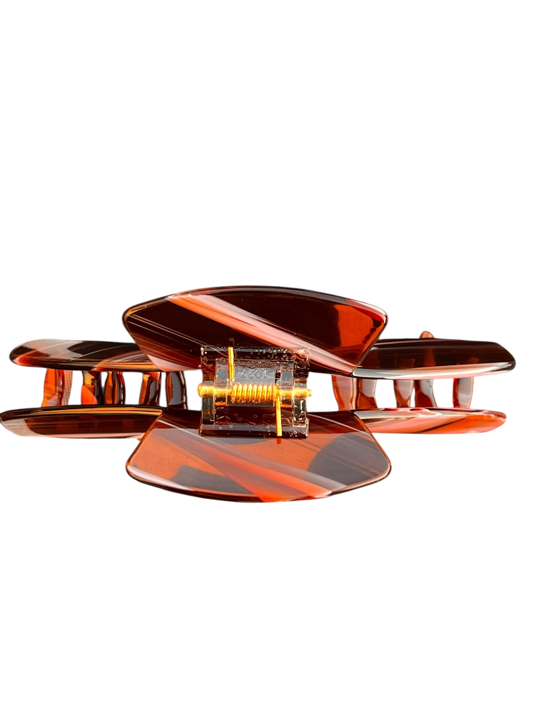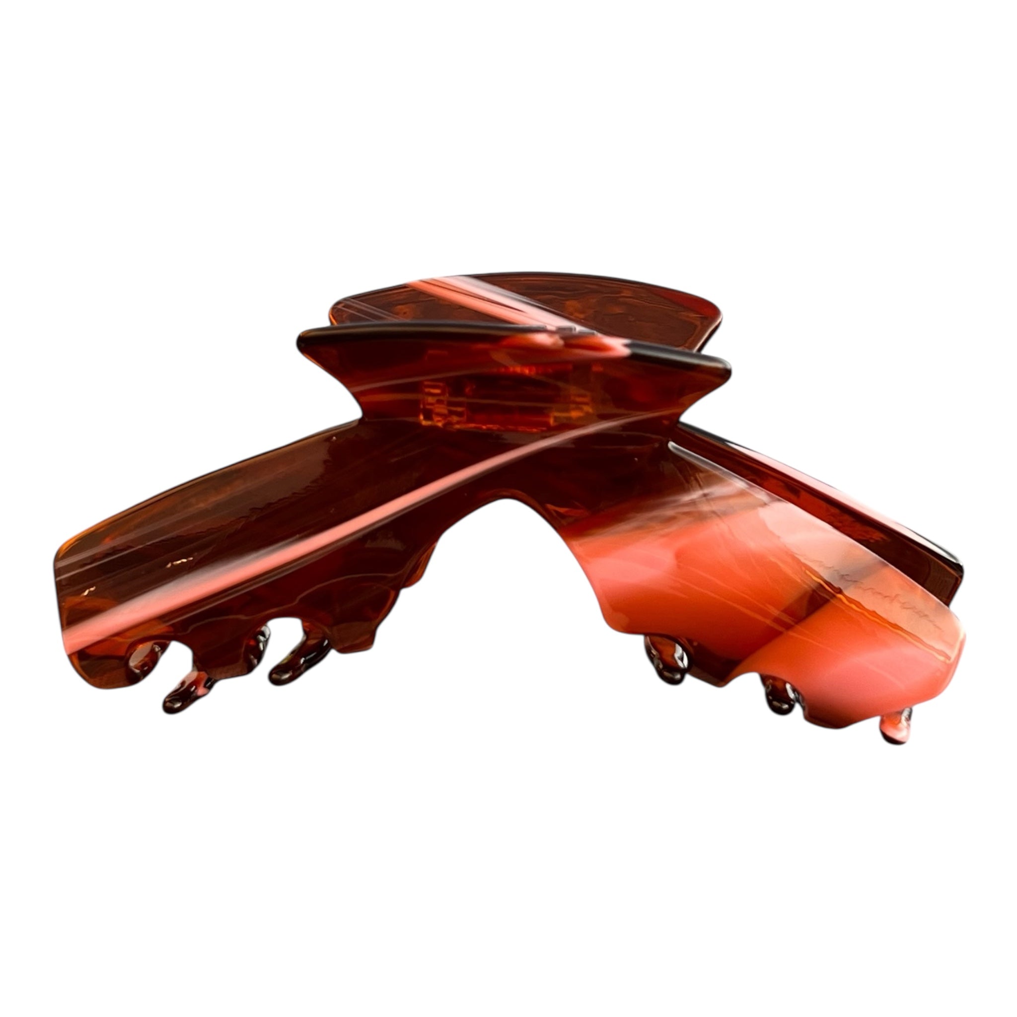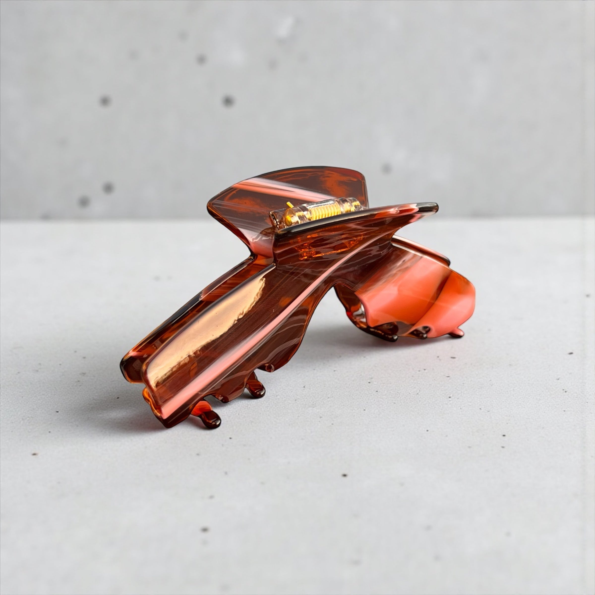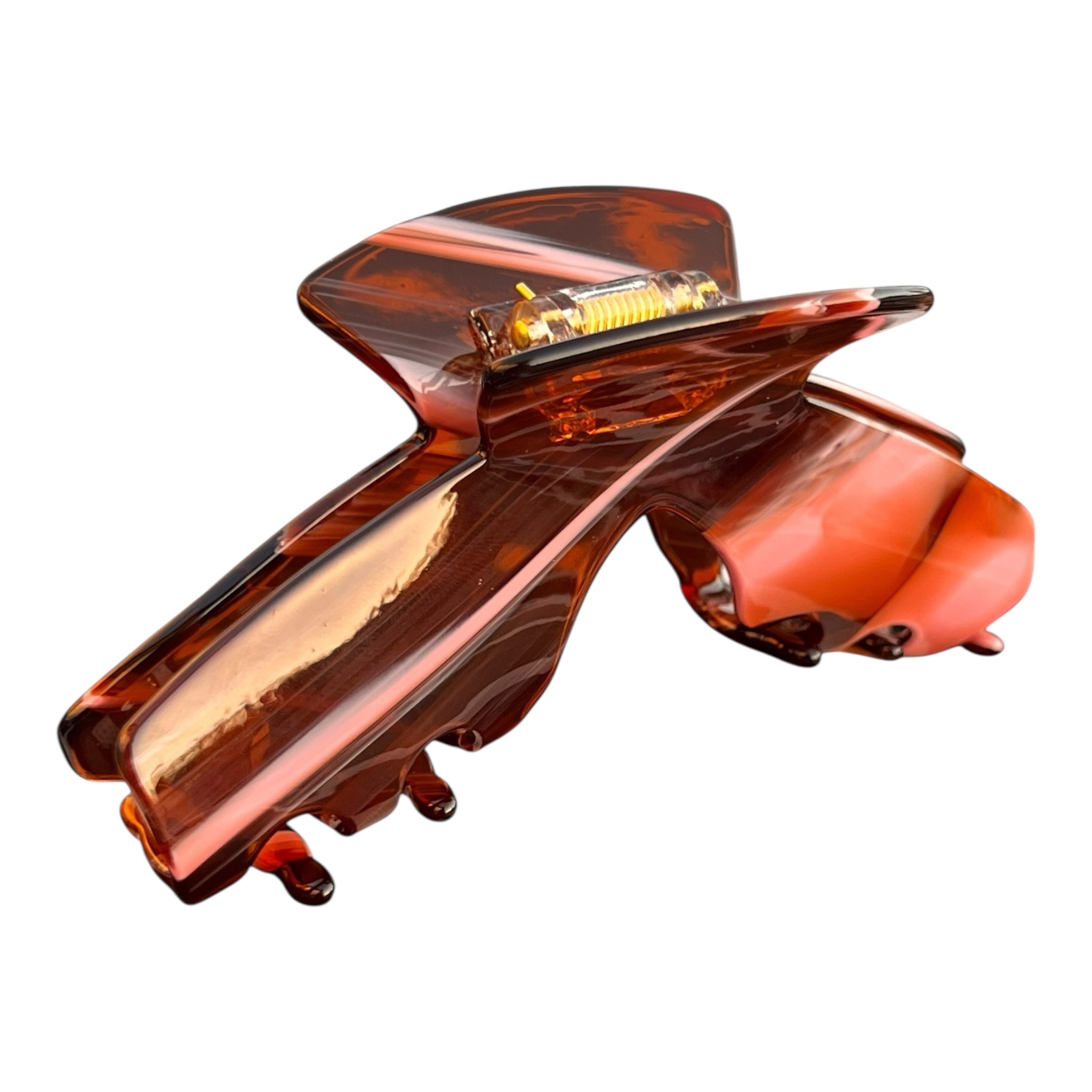 Siren is the amber tortoise claw clip with quiet, seductive confidence. The warm tortoise pattern goes with everything, while the curved design comfortably secures most hair types for everyday wear.